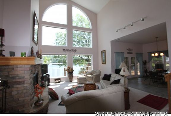 -Contemporary styling at its BEST with this wonderful home located on the Big Niangua. Light & Bright with walls of glass, stone surround gas log fireplace & wet bar in the two story great room. Well designed kitchen features custom cabinets, hard surface countertops and breakfast bar plus lake front dining. The master suite features; walk-in closet, dual vanity, jetted tub and separate shower. Upper level features the 2nd master suite + two spacious guest rooms with bath access. Multiple decks for entertaining + a water’s edge martini deck to enjoy the outstanding views. Serene surrounding & nature landscaping makes this a very special property