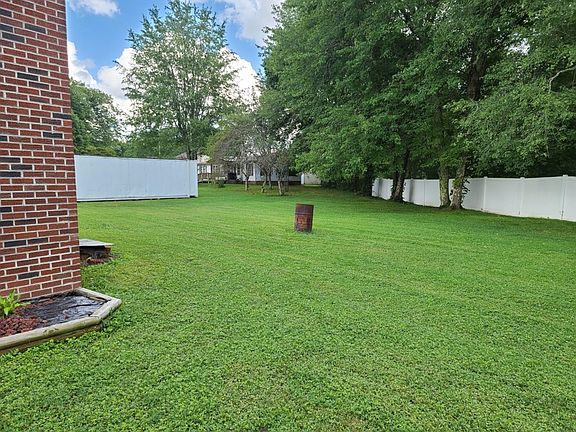 Spacious brick ranch on 1.13 acres. Updated kitchen with custom oak space saving cabinetry. Large living room, dining room, and den. Carpeting in 1 bedroom, Oak flooring in all other areas. Ceramic tile flooring in laundry, kitchen and baths. 3 bedrooms that includes large Master bedroom with walk-in closet and updated bath. Additional updated bathroom. New tilt windows, doors and heat pump (2015). New shingles 2012. 2 car attached garage presently used for storage and office. 4 car detached garage with 1404 square feet, includes half bath. 12x24 brick storage building .house for children. Large play ground in back yard. White vinyl fence surrounds boundary of the property. Custom landscaping. Large rear patio at back entrance. Public utilities. Great location!
