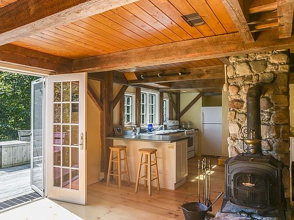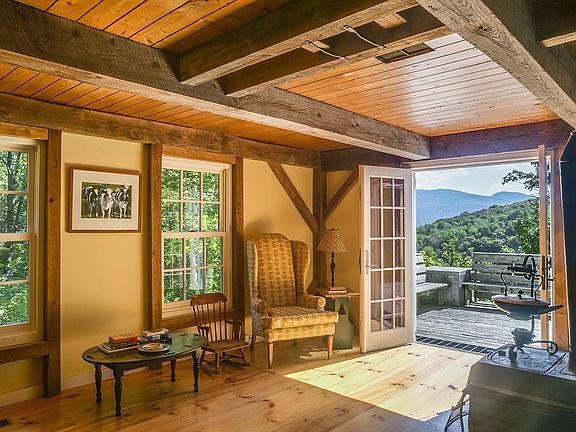 Highland Farm is a classic Vermont Hill Farm on 270 acres. The charming seasonal Post and Beam cottage was recently renovated with new wood floors and windows and offers beautiful views of the Appalachian Gap from the deck. The open floor plan on the first floor includes the kitchen, living and dining areas. 2 bedrooms are located upstairs with a full bath. The surrounding land includes two ponds, streams, fields, and woodlands. Full-on views of Camels Hump a 10,000 tap sugar bush, and a separate apartment in the large Post and Beam barn. Highland Farm is the ideal in Vermont Hill Farm retreats. Property is in Current Use program. An alternate configuration of 256+/- acres is also available.