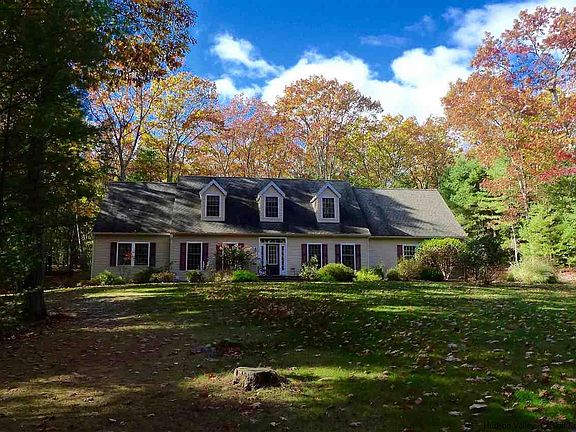 Sited around a bend on beautiful Buck Road, this 12-year old country cape is in immaculate condition and move-in ready. Country kitchen with granite counters and stainless appliances is open to a casual dining area and large family room with a brick fireplace. The center hall is flanked by a dining room and a spacious home office, which could also serve as a more formal living room. First floor master suite has a generously large walk-in closet and double sinks, separate stall shower and whirlpool tub in the bath. Three second-floor bedrooms are also quite large and one of them has its own separate sitting room/office. There's plenty of room for storage in the many closets, as well as the oversize garage and full basement, which has direct access to the outside. A long, covered porch at the back of the house looks into the woods and is an ideal spot for quiet reflection or outdoor entertaining. This lovely, comfortable and spacious home sits majestically on a level 3-acre parcel on one of the area's most beautiful roads, and is close to a wide variety of outdoor and cultural activities as well as many of our areas organic farms and fine restaurants.