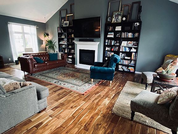 Newly renovated five bedroom home in Deerfield Estates with three walk-in closets, two full bathrooms with dual sinks, and two half baths. Featuring a large great room with cathedral ceiling, hand-scrapped hardwood floors and a gas fireplace. Updated kitchen with a sunlit kitchen nook, granite countertops, gas stove with vented hood, and lots of cabinet space! Finished basement with wood plank tile including a workout room, theater with drop-down movie screen and a game room with a hand-built barn wood countertop. The basement also boasts 3 beautifully built sliding barn wood doors. Large back yard with cedar privacy fences, underground dog fence, concrete patio, sun sails, Jacuzzi hot tub (1 year old) and Splash pool. Three stall garage. Within a short walking distance to the new sports complex where JFL plays! This house is situated in a family-friendly neighborhood on a quiet street and is perfect for entertaining and summer fun! Call the owner at 309.642.3352 to walk through.