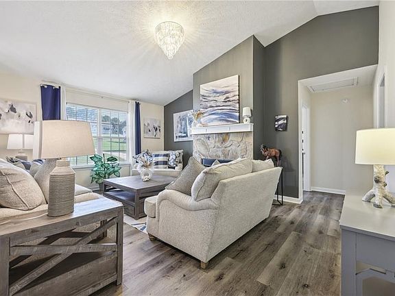 This inviting 4-bedroom, 3-bath home offers a spacious open floor plan, ideal for comfortable living. The family room features a cozy fireplace, seamlessly flowing into an eat-in kitchen equipped with stainless steel appliances. The primary suite boasts a private ensuite, providing a peaceful retreat. Enjoy outdoor living year-round with a screened-in porch overlooking the level lot. A two-car garage offers ample storage and parking. With no HOA and no fees, this property gives you the freedom to truly make it your own.
