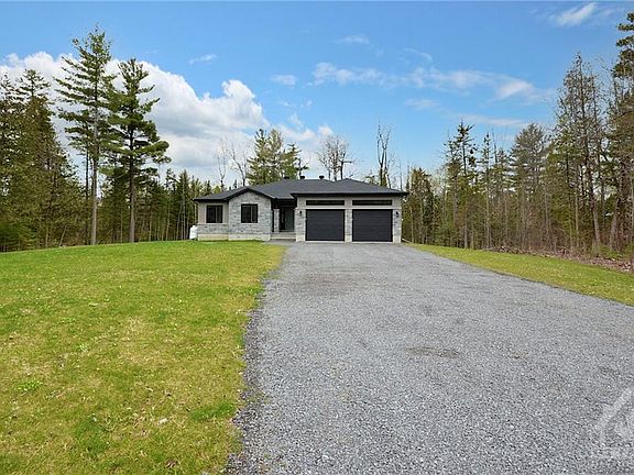 Welcome to this beautiful 3 bedroom bungalow nestled on a 2 acre lot backing onto mature trees for privacy. This modified Arcadia model has a gorgeous open concept with hardwood floors throughout. Designer kitchen with luxurious cabinets, quartz counter, large centre island and pantry. Oversized windows provide an abundance of natural light everywhere. The living room features a cathedral ceiling and a spectacular custom floor to ceiling stone fireplace with a solid wood mantel. The primary bedroom is tucked away from the other bedrooms and has a stunning ensuite bathroom with a stylish claw foot bathtub. A dream oversized double garage with 10 foot plus high ceilings has access to a spacious tiled mudroom. Enjoy living in the tranquility of this rural area with close proximity to HWY 417 and a 15 minute drive to Kanata Centrum. Offers to be presented at 7:00 PM Tues. 27 April however Sellers reserve the right to review and may accept pre-emptive offers. 24 hrs irrev on all offers