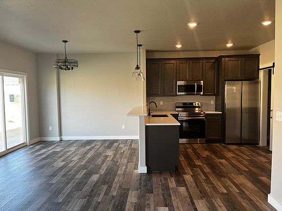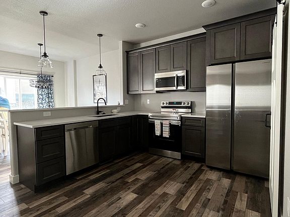 Beautiful new construction. Main floor living, kitchen and half bath. 3 bedrooms/2 bath upstairs. Gas fireplace. 2 car garage. Central a/c. Includes all appliances including w/d. Lawn care and snow removal included. $2150/month (not including utilities). Family friendly neighborhood. Small park within walking distance. Renter responsible for all utilities. No smoking. 2 car garage. Landlord responsible for lawn care and snow removal.