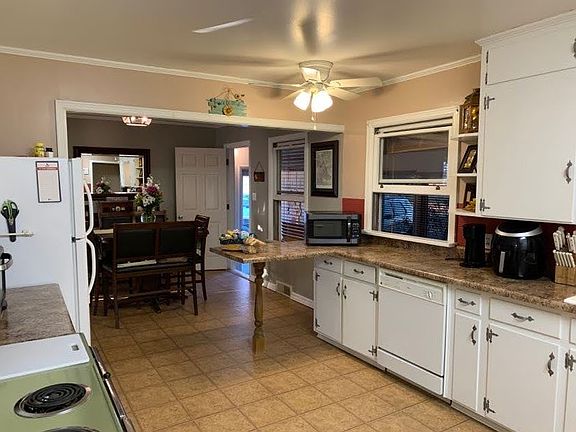 Great Property right on the edge of town. 1,996 square foot ranch style brick home located on a 125x145 foot corner lot with a 12x16 deck that will be perfect for grilling this spring! The home has new windows and blinds, a maintenance free metal roof and updated central heat/air and water heater. There are 3 bedrooms and a full bath with tub/shower combo off of the hall and a 1/2 bath off of the primary bedroom. The home has a gas log fireplace with remote in the family room. The living room has lots of windows for natural light & there are decorative shelves on your way to the dining room. Original hardwood flooring in most of the rooms. The kitchen has a snack bar and you have an electric range with two ovens, dishwasher, refrigerator, and the washer and dryer stay also. On top of all of this you will love all the space in the basement too. This is a must see. Give me a call for your private tour today.