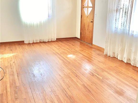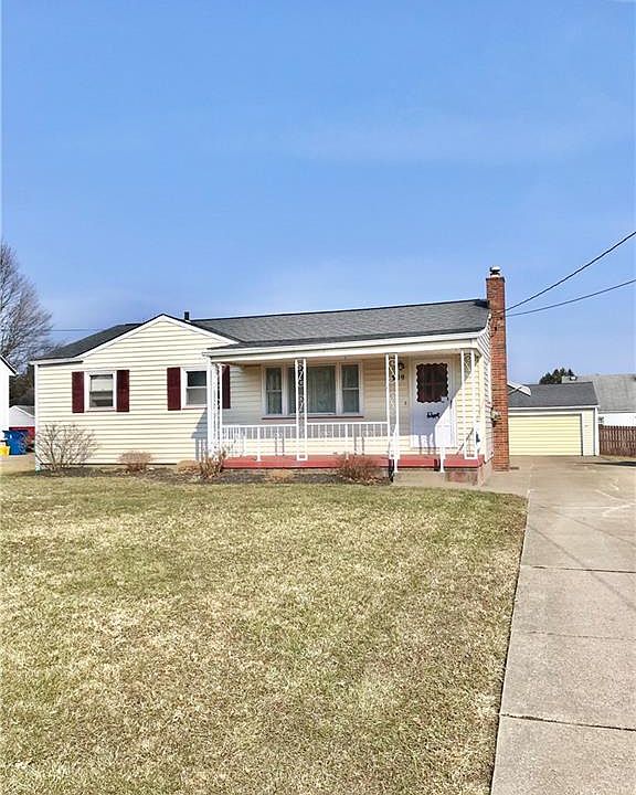 Ranch with a front porch and oversized 2 car garage. The Basement is partially finished great for entertaining. Kitchen and eating area are open to each other. 3 Bedrooms, Large Living Room. Hardwood flooring throughout. Well kept home. Sliding glass door out to the backyard is fairly new. The basement has a full bathroom with a newer shower insert. Glass block windows. Vinyl siding. New drain to the street for the downspouts. There is a workroom and storage shed off of the garage which is a separate area.