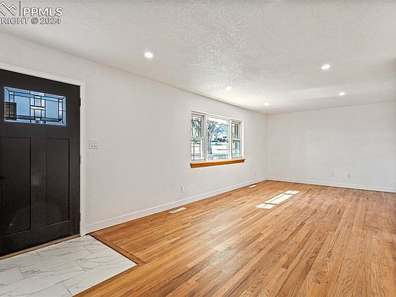 Unveil the charm of this 4-bedroom, 2-bathroom haven nestled in the heart of Colorado Springs! With 2,256 sq ft of pure comfort, this home is not just a property; it's an experience waiting to happen. Picture-perfect from the curb, the circular driveway and classic brick exterior give a warm welcome, setting the tone for the beauty within. As you step through the front door, be prepared to be enchanted by the gleaming hardwood floors that grace the main level, creating an inviting and timeless atmosphere. Cooking becomes a delight in the kitchen adorned with striking Black Quartz counters featuring elegant white veins. The tile kitchen floor adds a touch of sophistication, blending style seamlessly with functionality. The custom tile shower in one of the two bathrooms is a testament to luxury and attention to detail. The spacious 1-car attached garage ensures your vehicle stays protected from the Colorado elements, and the fenced yard provides privacy for relaxation or entertaining friends and family. Your outdoor oasis continues with a covered concrete rear patio, perfect for sipping morning coffee or hosting weekend barbecues. Need extra space? No worries! A storage shed is ready to accommodate all your belongings, keeping your living areas clutter-free. Discover the joy of living here, where every corner tells a story of comfort, style, and the warmth of home. Don't miss the opportunity to make this your haven in Colorado Springs!