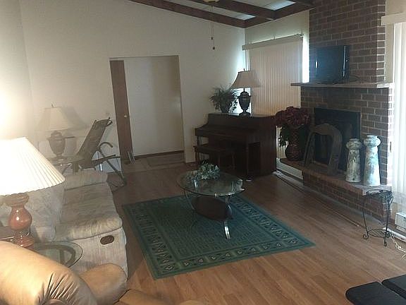 3 bedroom, single bath. Ceramic tile and laminate flooring throughout. Fireplace and vaulted ceilings. Nice home on quiet street.