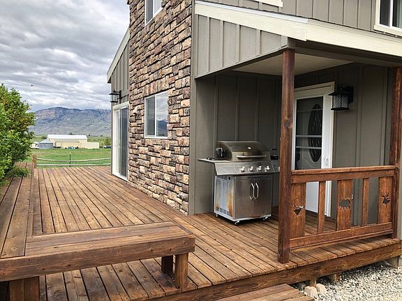 - Exterior Features: Acreage Fenced, Corrals, Deck, Flat Terrain, Horse Property, Irrigated, Loafing Shed, Mountain View, Patio, RV Parking, Lake View, Production Ground, Porch