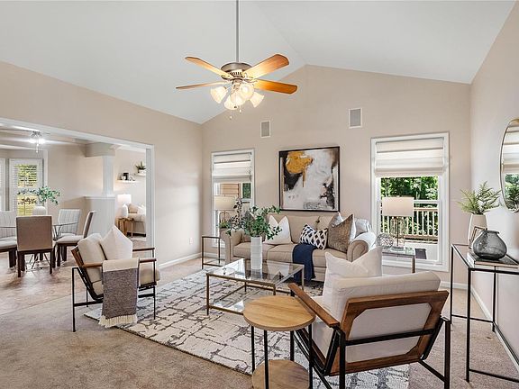 A captivating residence in popular Cottleville golf cart community offers a perfect small town family atmosphere. Open floor plan w/ soaring vault invites you into spacious living & dining rooms which are ideal for entertaining guests. The flow is seamless into the cooks kitchen which boasts stainless appliances, island, large pantry with ample storage, opening to the breakfast and hearth rooms, inspiring the inner chef in you. Easy access to the awning covered deck, private outdoor oasis for dining & enjoying the fresh air. The primary bedroom is a luxurious retreat, with deep coffered ceilings, bay window w/ amazing view complete with walk in closet and en-suit hosts luxury tub & separate shower. Three additional bedrooms offers plenty of options w/ 2 in the lower level. Outside the spacious rec room w/ bar and fireplace is a huge covered patio. Conveniently located in a desirable neighborhood, rare find on an incredible lot to experience the finest in hassle free living. Act fast! Location: Detached, Ground Level, Suburban