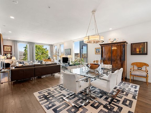 Jaw dropping South Boston stunner! This spacious 2+ bedroom, 2.5 bath floor through has been selectively and professionally customized throughout. Foyer entry with powder room and coat closet leads you to an entertainer's kitchen with stainless steel appliances, lacquered cabinetry, over-sized center island, perfectly situated to enjoy the open concept living/dining with soaring ceilings, floor to ceiling corner exposure windows, custom window treatments and trees top views of the Boston skyline. Primary bedroom suite with custom closets and spa like bath with double vanity and steam shower. En suite Guest/2nd Bedroom suitable for queen sized bed and/or office in addition to dedicated office space. All this AND glorious private roof deck!! Hardwood floors throughout, elevator and garage parking complete this stunning home. Seconds to South Boston, Seaport and Downtown's best! Seller welcomes offers with requests for buyer concessions