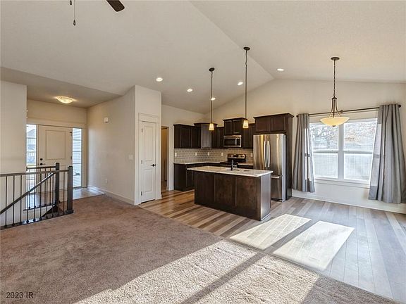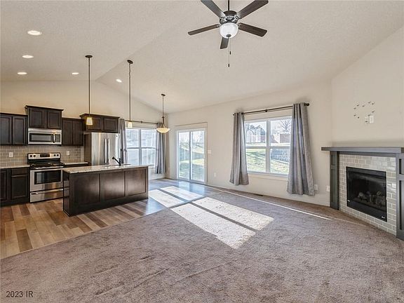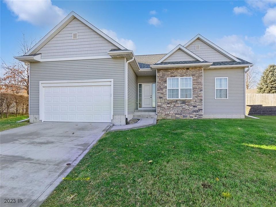Welcome home to this 2016-built ranch nestled on a quiet cul-de-sac, with 3 bedrooms, 1.75 bathrooms, and 2-car attached garage. The master bedroom, features a spacious walk-in closet and a private master bathroom, complete with a convenient walk-in shower and stylish double-sink vanity. The heart of this home lies in its open layout, where the gorgeous kitchen takes center stage. Equipped with appliances that stay, this kitchen is a chef's dream. Spacious living room offers a fireplace to stay cozy on those cold Iowa days. Convenience meets functionality with main floor laundry. The entry welcomes you with custom built-in cubbies, adding a touch of personalized charm and organization to your daily routine. Slide open the door to the back patio and discover a tranquil retreat in the nice backyard, perfect for outdoor gatherings, barbecues, or simply enjoying the fresh air. The possibilities are endless in the unfinished lower level, offering potential for additional bedrooms, with egress windows, plumbing already stubbed in for another bathroom, and expanded living space tailored to your needs. New roof in August of 2023 and siding will be replaced. Don't miss the opportunity to make this stunning ranch your forever home. Schedule a showing today and experience the beauty, comfort, and potential that this home has to offer. Call your favorite realtor today!