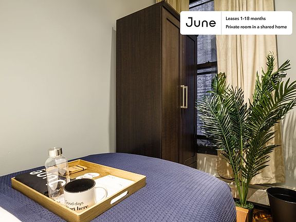 This Twin room in Upper East Side is available on a 12 month lease or a flexible short term (31 to 364 days) lease. You pick your custom start and end date. Monthly rent rate is determined by furnishing preference, move-in date and move-out date. Speak to a June representative for recommendations on the best stay duration for the lowest rate.