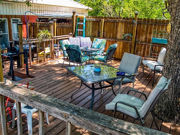This property sets on 10 lots on the corner. Current owners have a huge garden in the back yard and gorgeous flowers in the large front yard. Super cute deck with privacy in the front adds character to this large home. The master bedroom is extremely large with its own porch and exits. Split bedrooms makes for great layout. The laundry room is oversized with great windows and views of the backyard. Tons of pecan trees surrounding the home plus a beautiful rose of sharon. There is a full bathroom in the garage so when you have been working in the yard you can shower off before even entering the home. Private water well for outside which makes gardening even sweeter.