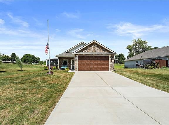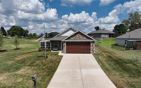 Well Maintained 3 Bedroom/2 Bathroom home located in Lake Concord in Plattsburg MO, a wonderful small town community! Eat-in kitchen with vaulted ceilings, granite countertops, tile backsplash, and breakfast bar! Spacious master en-suite with tiled walk-in shower, double vanity, and a large walk-in closet. Two additional bedrooms, a full bath, and a laundry room down the hall! A screened-in back porch perfect for entertaining guests, 2 car garage, and a shed in the back yard for extra outdoor storage. You won't want to miss this one!