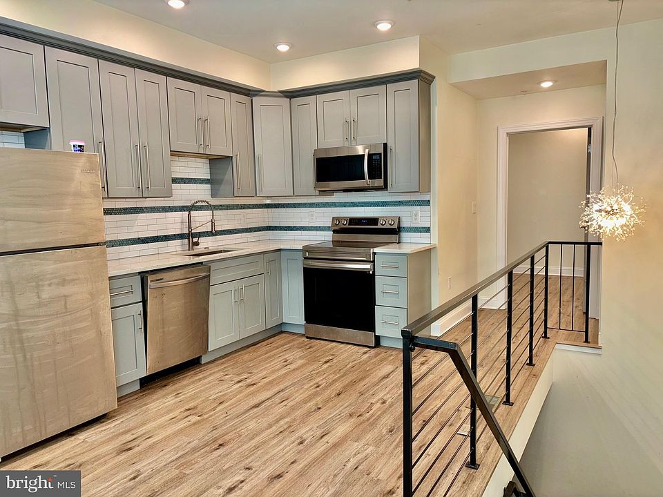 Quartz countertopsIn-unit washer dryerRecessed lightingHardwood floorsBuilt-in microwaveGas stoveGarbage disposal
