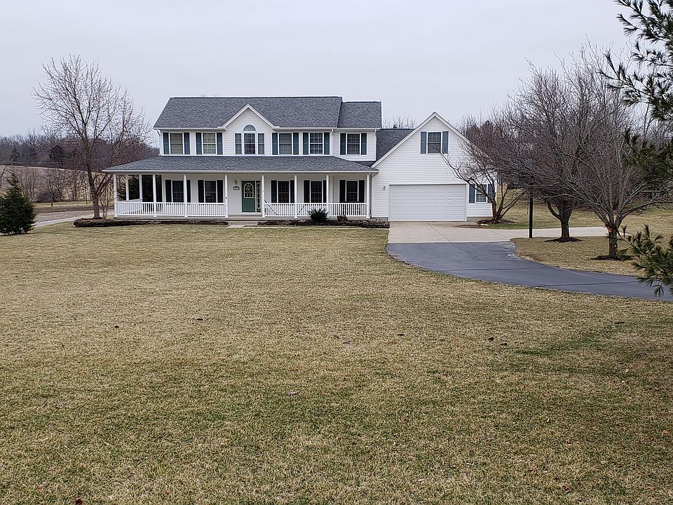 4 bedroom, 2.5 bath home with great room, 9 ft ceilings on first level, large kitchen with brand new appliances. Spacious master bedroom with en suite which has new tile.shower, jetted tub, double sinks and walk in closet. Bonus room over 2.5 car garage, second floor laundry plus full unfinished basement. All this on 2 acre lot backing up to creek in a great country setting. new roof (2014) new water softener (2011) new water htr (2016) master shower upgrade (2019) new AC (2015) new appliances (2019) new paint (2019) new hardwood floor (2011)