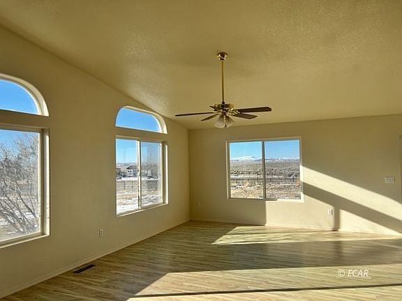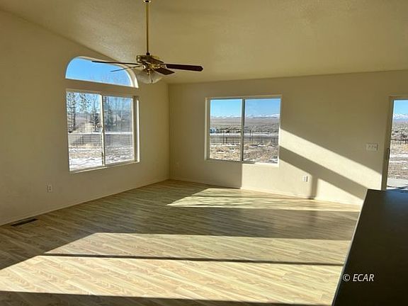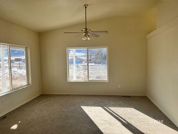 Wrap around covered front patio takes in the great views of the Ruby Mountains. Enter into open floorplan with formal sitting room and office/den separated by built in gas fireplace and open kitchen with arched window and vaulted ceilings. Three bedrooms down the hall with master bedroom large jetted tub and separate shower. Roof mounted evaporative cooler ducted to main areas of the house. Attached 3 car garage with separate metal garage detached. owner agent