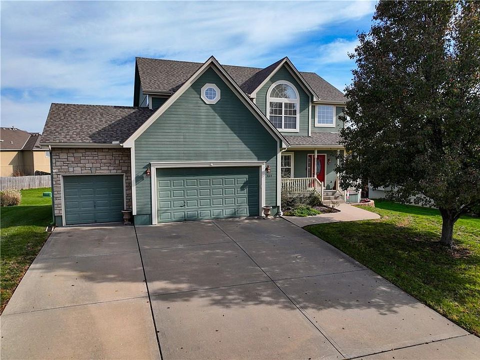Experience the epitome of spacious and luxurious living at 509 Eagle Glen Dr, a magnificent residence nestled in the charming community of Raymore, Missouri. With 4 bedrooms, 2 full and 2 half bathrooms, and over 3000 livable square footage, this home is the epitome of comfort, elegance, and room to roam. This is more than just a house; it's a canvas for your dreams and memories. Don't miss the opportunity to make it your own. Contact us today to schedule a viewing and discover the allure of living in Raymore! You will fall in love with the space and layout of this one... starting with the wrap around porch, large kitchen, living and dining areas with beautiful hardwood floors. Ample bedrooms and space galore upstairs. Master suite is spacious with vaulted ceiling, french doors, separate shower and jetted tub, dual vanity and more! Basement is finished with family/rec room area and half bathroom. Additional unfinished space leaves options for your imagination. Check this one out today! Newer roof, AC and Exterior paint!