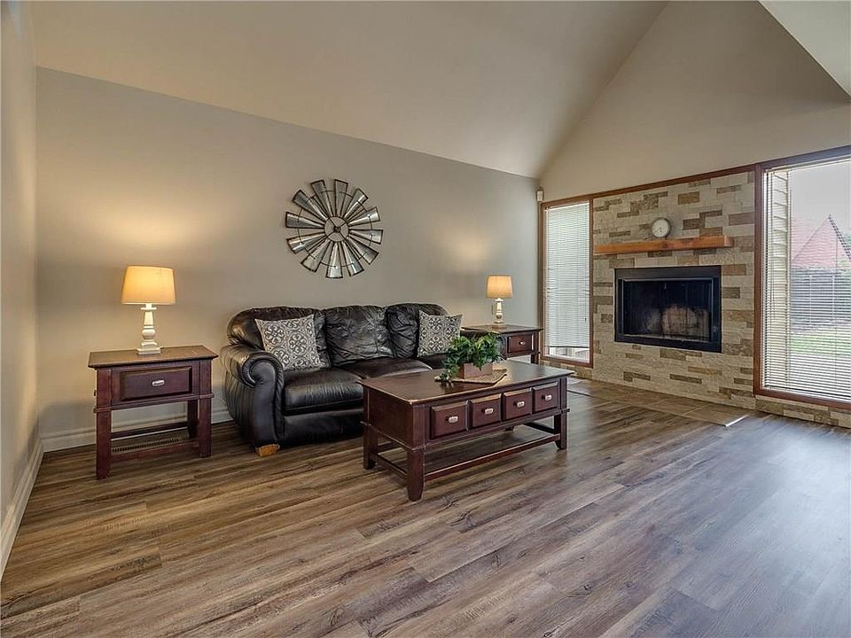 Check out this California Style Modern home located conveniently in West Norman! This single family unique, modern, art deco style home is in the perfect location, convenient to everything! Tall ceilings in the living room with a fireplace. Floor to ceiling windows all around provide an abundance of natural light. The updated modern style is move in ready. Both bedrooms are set up with on suite bathrooms separated by an amazing office with lots of natural light and windows. New roofing system with warranty. This is a one of a kind home and is truly a must see! Don't miss out on one of Norman's most unique and stylish homes.
