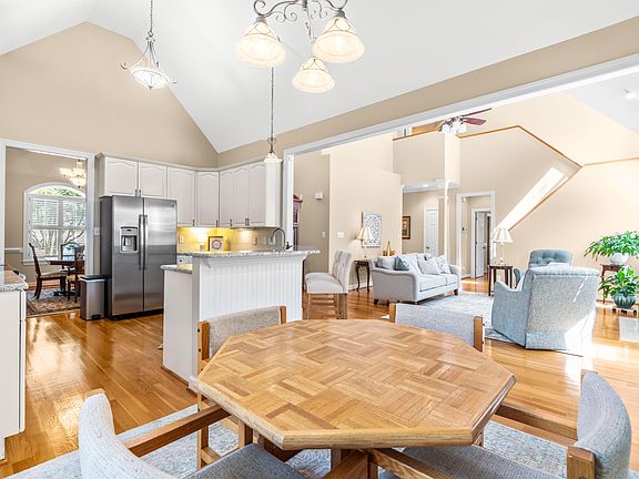 Tucked away in a quiet cul-de-sac in desirable Wall Creek—a no-HOA neighborhood with charm and space—this beautiful 1.5-story home is the perfect blend of comfort and style. Surrounded by mature trees and lush landscaping, the home features site-finished hardwood floors throughout the main level, including the spacious first-floor primary suite. Vaulted ceilings and large windows fill the space with natural light. The kitchen has been refreshed with granite countertops and stainless-steel appliances, and opens seamlessly to the living and dining areas. A screened porch overlooks the private, fenced backyard—ideal for relaxing, entertaining, or play. Upstairs you'll find two bedrooms plus a versatile bonus room with custom built-ins, and walk-in storage that adds practical convenience. Recent updates include aluminum fencing and built-in shelving in the bonus. With flexible living space, timeless finishes, and a peaceful location, this one is move-in ready and full of character.