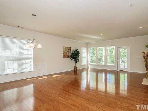 Popular Willow Bend plan: 2-bedroom + den on great flat lot; backs to mature landscaping. Short walk to club house! Fabulous kitchen w/ island & breakfast area. Upgraded gas stove & SS appliances. Refrigerator stays! Hardwood flooring in main living areas. Spacious dining & living areas. Split bedroom plan. Large master bdrm & bath features double vanity, shower, soaking tub plus huge closet! Covered expanded rear porch can be easily screened. Pull-down attic storage over garage.