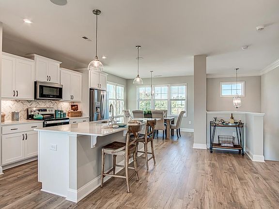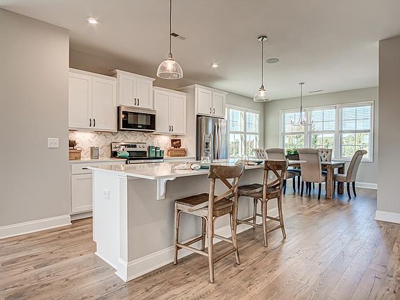 The Pullen 4 bed, 3.5 bath exterior townhome features an open floorplan design with plenty of light, versatile rooms, and lots of storage space.The main level features a large living room, eating area, half-bath and beautiful kitchen with stainless steel sink and appliance package. Granite countertops and kitchen island finish off this open-layout kitchen. Combined with a large, covered outdoor living area with its own storage room and privacy wall, the Pullen is the perfect home for entertaining.The upper level include the spacious owner's suite with walk-in closet and tray ceiling with crown molding. The owner's bath features tiled seat and walls in the shower, dual-sink vanity, and linen closet. The central area has a large open feel at the stairs and a laundry room with easy access. The second and third bedrooms have access to a full bath with dual-sink vanity and tub/shower combo.The lower level includes a two-car garage, storage room, front and rear foyers, a full bath and a fourth bedroom which can be used as an office or entertainment/rec room.At 2,420 sq. ft., there is plenty of room for everyone.
