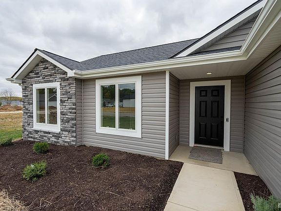Beautiful new home by Granite Ridge Builders in Cardinal Creek subdivision in Roanoke has 3 bedrooms, 2 bathrooms and over 1500 square feet. This spacious home has an open layout with a cathedral ceiling and fireplace in the great room and large picture windows providing ample amounts of natural light. The open kitchen has custom stained cabinetry and ample prep space for cooking along with an island. The kitchen also has a stainless steel gas range, microwave and dishwasher plus a pantry. The nook offers a 6' wide sliding glass door that leads outside to a 12' x 10' patio perfect for outdoor relaxation and entertainment. Unwind in the spacious owner's suite with a soak in the large garden tub. Discover the simplicity and comfort of this new ranch home.