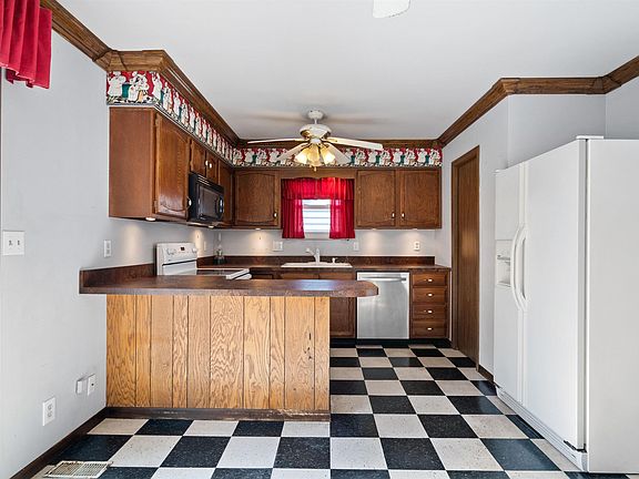 The 5 white columns and 12' tall covered front porch sets off this elegant bilevel from the street. A lush and landscaped yard with newer concrete driveway leads you to a rear detached insulated 2 car garage loaded with workbenches and toolboxes. The gambrel roof allows for an additional 437 sq ft garage loft with 8.5' ceilings and large walk-up stairs. The backyard features an approx. 13'x30' in ground pool (9' at deep end) that has just been professionally closed by AquaVida with a security cover and new liner that was installed by FT Kelly in March 2021. A tiki bar, wood privacy fence and 8x11 raised deck off the kitchen finish off the outside. Inside, find 3 bedrooms up with the owner's suite featuring a half bath. Another hallway full bath, living room, and a large eat-in kitchen complete the upper level. Get away to another large family room, 4th bedroom, full bath, laundry room, and walkout door to the pool downstairs. If you enjoy the idea of saving heating costs, there is a Jenson standing wood burning stove in the basement workroom that integrates with the electric furnace. Water heater newer; roof believed to be about 5 years old. Home to be sold AS IS. Preinspection available.