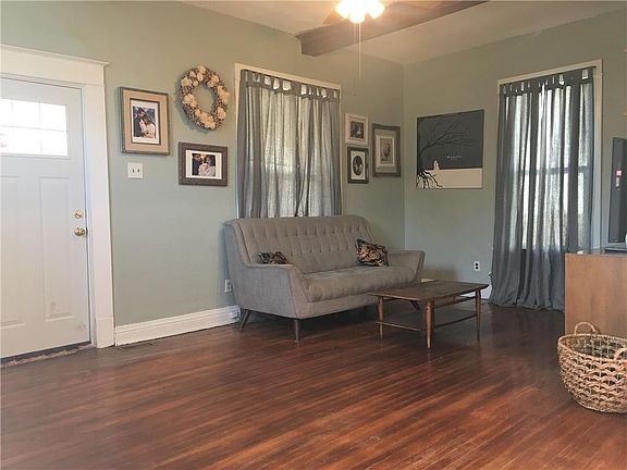 Cute northside home with vinyl siding, newer windows, covered front and back porches, and privacy fenced backyard. Open entry, living, and dining rooms. Wood floors and kitchen with appliances and pantry. 2 bedrooms and full basement.