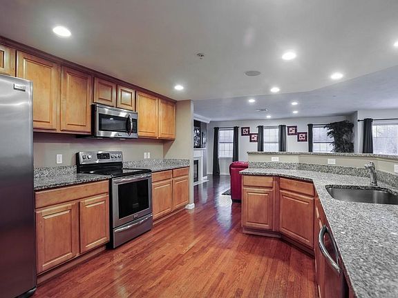 Back on the market due to buyers financing ~ Rare to find~this Pavillion style is a spacious 3 level, 3 Bedroom, 3 Full Bath over 3000 sq ft townhouse at The Gables that features a wide open floor plan with many upgrades such as Granite Counter Tops, SS appliances, Hardwood Floors, Designer lighting, and its wired for surround sound in the Living Rm, Kitchen and lower level. Marble gas fireplace in large bright, inviting living room~huge open floor plan to kitchen and dining with 3 panel sliding glass doors to deck. Bonus room with wet bar and wine frig in finished basement with a full bath and natural light from large windows, Newer water heater 2015. The Gables is approved for VA financing. There is nothing to do except move in, so make an appointment today