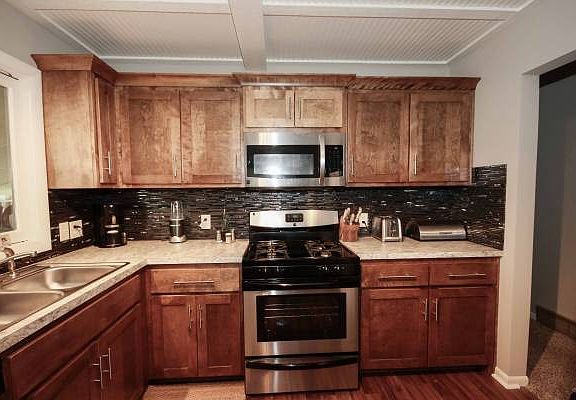 Open floor plan with new beautiful updates. New York high efficiency HVAC system. New roof, new gutters, new Carpet, hardwood flooring, new kitchen cabinets, new appliances, new paint inside and out, new lighting fixtures/fans, surveillance camera system, lots of windows. Beautiful white wood paneled ceiling. Lots of character! Newly fenced yard! 2 blocks from elementary School. In desired award winning Smithville School Districts. Basement with secondary kitchenette, private entry and option to add 4 conformed bedroom. Quiet neighborhood. Brand new street, sewers, and curbs completed by Fall of 2017.