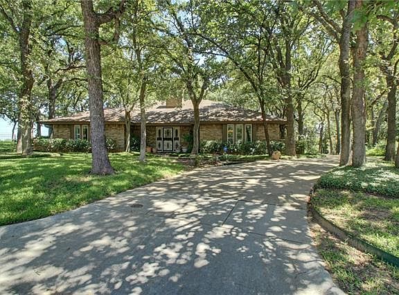 Charming home settled among trees in slight court-style indention on Highwoods Trail. Enjoy spacious entry leading to dining with one of many window seats and special features including ceiling treatments, Corian counters and built-ins. Warm living area features wall of windows and massive rock fireplace with view thru covered patio to treed back yard scenery and oversized lot. Near Woodhaven golf course and great proximity to DFW.