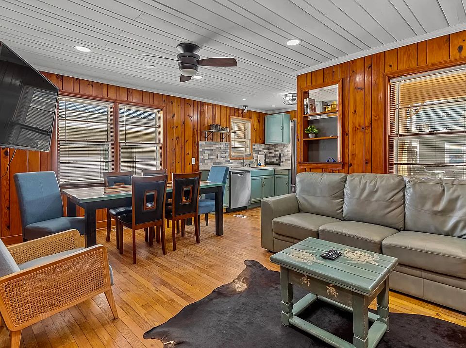Available September 1st - March 5th 2026. 3 months minimum lease. Month to month is available for increased rent. Newly renovated 2BR/1BA adorable cedar wall cabana. Hardwood floors, brand new kitchen, new furniture, great recessed lighting throughout the property, in-unit laundry. Layout: 1st bedroom: Queen bed, TV 2nd bedroom: Full bed + bunk bed, TV Living room: couch, dining table fits 6, TV. Kitchen: fridge, electric stove, microwave, range hood, dishwasher, garbage disposal. Bathroom: walk-in shower. 2 parking spots for small or medium size cars, 1 spot if it's big size vehicle. The unit is part of duplex, there is almost identical side by side unit for rent as well. This property is sharing courtyard with another 2 story building creating Triplex compound. There is paved patio area on a back with outdoor furniture, bar area with grill and swing. Prime location: 1 block to the beach and few short blocks walk to Main St with bar scene and eatery. Available September 1st - March 5th 2026. 3 months minimum lease. Month to month is available for increased rent. No Pets. Furnished. All utilities included, WIFI included. 1 month refundable security deposit. No personal furniture moved into the unit allowed. No storage for personal items offered. Requirements: - $39 application fee for each adult over 18 who plans to live in the property: covers credit history, background check and eviction report - must not have prior evictions - must not have hard criminal charges - income verification or proof of funds required unless rent is prepaid, will be reviewed on case by case basis Tenant is responsible for clogged toilet and drains. Rent due on the 1st of each month. Late payment fee - $50. If rent is not paid within 5 days, eviction will be filed according to SC landlord-tenant law.