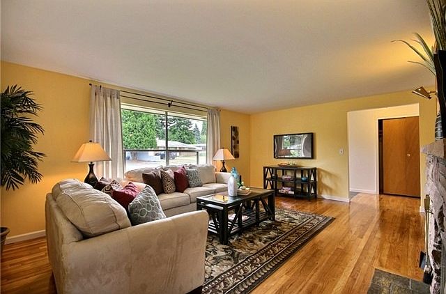 Classic rambler is simply stunning! Enter and discover extensive hardwoods, impressive dual-sided brick frplc, warm wood tones, and comfortable, fresh style thruout. Gracious living areas flow easily from one to the other. Dining rm opens to gleaming kitchen with casual eating space; access to patio in fenced backyard. Two car garage features work area/half bath; addtl off-street parking. Super location minutes to Renton Tech, The Landing, freeways, Seahawks facility. Absolutely move-in ready!