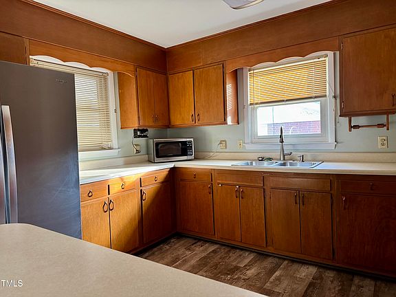 3 bedroom, 2.5 bath ranch with pond view! Four sided brick and roof just a few years old. Original hardwoods through most of the main living area. Spacious kitchen with plenty of cabinets and newer fridge that stays. Wood burning fireplace in the dining room adds tons of charm! Large daylight basement has full bath, wet bar, spacious interior workshop and tons of storage! Could be used as primary suite. Walk out to the upper deck or lower patio and take in the beautiful pond view. Don't miss the rocking chair front porch, 1-car carport or the ramp into the kitchen (can be removed). Fenced yard and large storage shed. Amazing location in the heart of Garner!