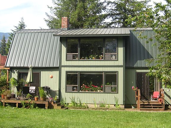 Unique Barn Styled 2 Story located in the City but very private dead end street Beautiful Mountain View Lot located on the pristine May Creek Large back yard with privacy of creek and territorial views This home is loaded with unique charm Exposed beam ceilings,remodeled and updated master bath, new sheetrock in areas and comfortable large rooms and bedrooms! Newer metal roof and metal carport Vermont Deep Blue Enameled Cast Iron wood burning stove!! Walking distance to Elementary and town