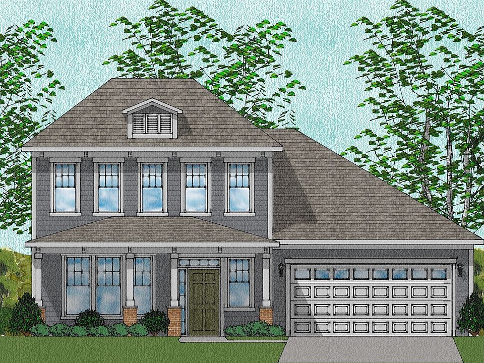 The Newbury home is a family dream with its large covered front porch. The front entrance of this home will greet you with beautiful metroflor woodstock flooring, which flows throughout the main living areas of the first floor. French doors lead to the office that is privately tucked away in the front of the home. An entertaining kitchen opens directly into the eat-in kitchen and family room. Connect in through the Bluetooth enabled music port with ceiling speakers while cooking meals in this beautiful kitchen with its Quartz Blanco Marina flat center island with overhang for bar stool lounging or homework time. Designer finishes such as staggered grey cabinets and under-cabinet lighting complete the kitchen. The master suite is conveniently located on the first floor and includes a huge walk-in closet, and a luxury master bath with dual vanity and a large walk-in shower. Hardwood interior stairs are accented by wood painted open railing and leads to the second story of the home, which features three bedrooms, a large loft, a shared bathroom and unfinished attic storage (no more climbing up and down a pull down attic to retrieve holiday decorations). The two-car garage will include a drywall finish and houses the tankless water heater.
