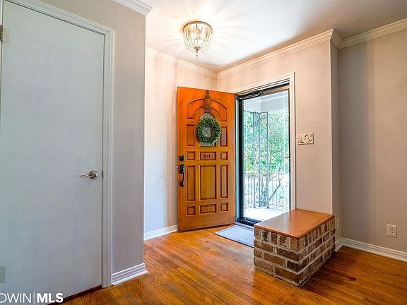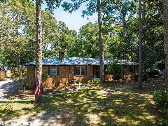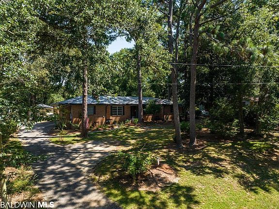 Right smack in the Heart of Olde Towne Daphne! This very well loved beautifully updated, one level, ranch home is within walking distance of the Bay, City Parks, and all the restaurants that OTD has to offer. This home has many timeless touches including the antique hardwood floors throughout all the living area and bedrooms, real wood paneling and Wainscoting finishes, antique carpentry built in cabinets, updated lighting and the original retro bathrooms that are in great shape and are incredibly clean! The kitchen has Stainless steel appliances, a beautiful large farm sink, butcher block counter tops, tile backsplash, task lighting, tongue and groove ceilings and plenty of cabinet space. Bedrooms all have wood floors, ample size, wood accents and plenty of closet space. The screened in back porch is incredible and I promise this is where you will spend a lot of time. With over 300 square feet it has a concrete floor, an exposed pine ceiling, two double fans, a metal roof, and tons of space to stretch out and relax! The backyard is flat, grassed, shaded, private, and partially fenced with two large storage buildings that are in great shape! This home is brick, has a metal roof, rain gutters all around, and the electrical system has been completely rewired. If you are waiting for a really property in OTD this is definitely one to check out!