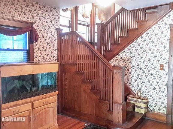 Three stories finished, large entry foyer double stair case going upstairs, living room w hardwood floors, dining room with hardwood floors, window seat and pocket doors, kitchen with new tile floors and new counters, kitchen has additional breakfast area also, half bath off side entrance going out to garage or down to LL. Upstairs has 3 bedrooms, full bath plus an office or nursery. Attic is finished with 2 additional rooms. New metal roof on house and garage 2012. Exterior all freshly painted 2015. Garage is oversized 30' w x 24' d. Deck is 20' x 16'.