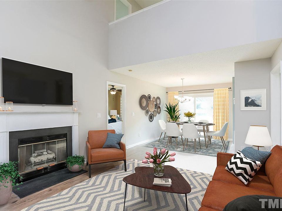 This Raleigh two-story home offers gas heating, a fireplace, stainless steel appliances, a kitchen pantry, a walk-in master bedroom closet, a master bathroom with dual sinks, a deck, and a one-car garage. This home has been virtually staged to illustrate its potential! Thanks for viewing! Fireplace and chimney to convey as-is, no known defects. Windows with possible blown seals to convey as-is.