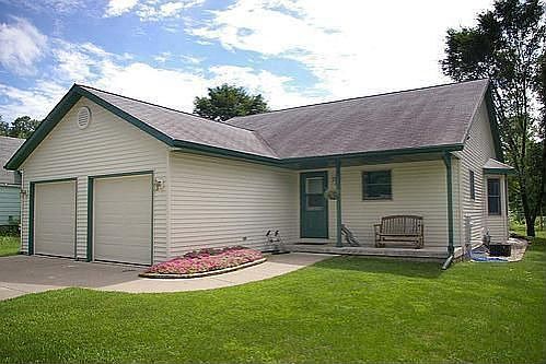Spotless newer ranch with over 1500 sq ft on main and approx. 900 sq ft living area on lower. Main level is open concept. Kit loaded with cabinets and snack bar. Great Room with terrace doors to patio. Dining area,Kitchen, Great Room all have cathedral ceilings. Huge Master Bedroom with WIC. Lower level offers 4th Bedroom with egress window,Den with cabinets,full Bath,Large Laundry room,Huge Family Room Maintenance free exterior. Water Softner included.8x12 Garden shed. Concrete driveway.