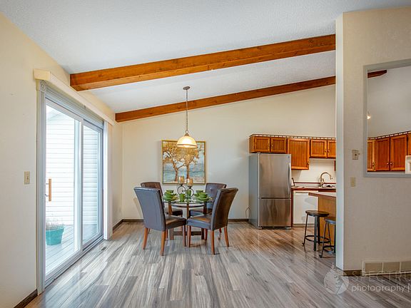 Easy Living in this open floor plan with high ceilings and an abundance of windows. The kitchen offers a sit up counter ,newer refrigerator and laminate flooring. The dining room offers patio doors that open to a wonderful newer maintenance free deck for your BBQ grilling or just relaxing with friends and family. Two nice sized bedrooms and full bath on the upper level. Completely finished lower level with walkout to a patio, large family room and 3/4 bathroom. . Oversized double garage. Condo fee of $225.00 per month covers lawn, snow, water, ext insurance. Doors and windows are covered by the home owner.
