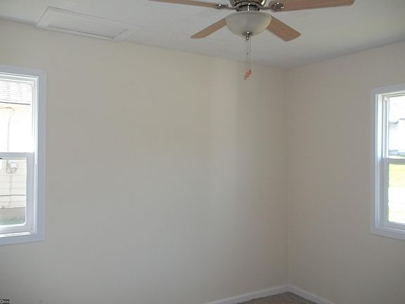 Kitchen has marble look laminate counters, large stainless sink, painted cabinets and glass tile back splash. Bath has large tiled walk-in shower. New carpet throughout as well as new windows. Vinyl siding makes this a home with no care. Storage shed and gravel parking in back yard.