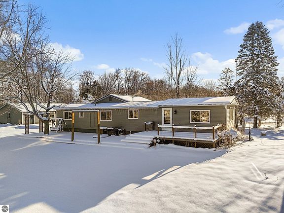 This delightful, permanently affixed home with its warm, wooded interior and gas fireplace sits on over an acre in lovely Fife Lake. The circular drive and sizeable addition includes new appliances, custom tile work, and a detached three-car heated garage that offers ample storage for vehicles, tinkering, or recreational equipment. The big back deck and space to garden are ready for its next green thumb, where the metal roof and newly painted vinyl siding give this home an upgraded aesthetic. A short drive delivers you to Fife Lake Elementary School, outdoor activities for the Up North enthusiast, and only 30 minutes to Traverse City.