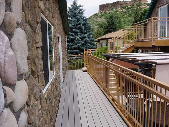 Priced to sell! This amazing and unique home, nestled at the base of Castle Rock, is an opportunity that rarely presents itself. The exterior of the property has been expertly appointed with landscaping that includes a gurgling stream, and pond that is full of fish and aquatic plant life. The landscape was built with Colorado's climate in mind, as perennial colors continually bloom throughout the year. The decks that surround the property are almost maintenance free and there are views of the yard and of Castle Rock from many of the deck's sitting areas. Above the enormous 4 car garage, there is a 1600 SF apartment, which is an amazing opportunity to create rental income or run a home based business. The garage itself is equipped with 220 volt electricity for welding, a large compressor, which is piped throughout, and a full bathroom with shower! Inside the main home, you will find an enormous kitchen that is a cook's and entertainer's dream and warm touches throughout. This is a must see property, without the restrictions of an HOA! According to public record, this is a 2 bedroom 1 bath, but the upstairs has an area which easily could be used as an additional bedroom/flex space. Buyer to verify all information, including number of bedrooms/bathrooms and to verify the square footage is correct.