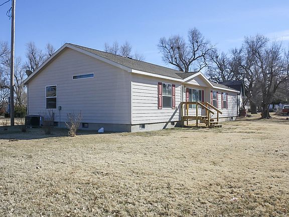 Move in ready house on a large corner lot. Bright living room with a large picture window, vaulted ceiling, open to kitchen, dining room, and family room. The open concept living area offers a great family kitchen with breakfast bar, lots of cabinet space, includes stove, dishwasher, refrigerator, microwave. Dining area between the kitchen and family room, French doors offer access from dining room out to the back yard. Family room offers floor to ceiling built in entertainment center storage and bookcases, making the family room the ultimate entertainment area. Bright & roomy master bedroom with master bath. bath offers whirlpool tub, double sinks, walk in shower, and large walk in closet. Opposite side of living room is office with built in desk and storage, 2 bedrooms with very nice closets, hall linen closet, main bath with tub shower combo and offers second access to laundry/furnace room which is adjacent to the kitchen. Laundry room has access to backyard. Super spacious corner lot offers lots of outdoor space for your family and friends, cement in ground storm shelter, and alley access. Even though this home is just a few years old this home seems like new! Don't miss out on this house call today!!
