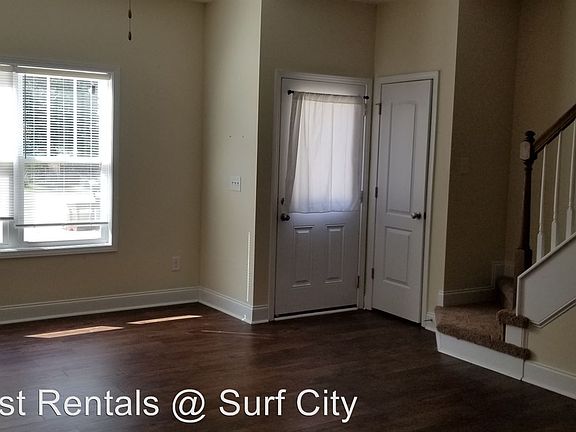 Townhouse-End Unit in Holly Ridge - Lovely end unit of 4-unit, townhomes, has a fenced in back yard and no maintenance since owner handles landscaping. This two-bedroom, 2.5 bath property offers plank flooring and an open design great for entertaining and maintaining privacy with bedrooms and laundry hook-ups upstairs. Each bedroom has its own separate bath. There are two assigned parking spaces. Convenient to base and beaches and short distance to Wilmington. Application Fee Pet Friendly w/Owner Approval Dixon School District Non - Smoking No Cats Allowed (RLNE4093971)