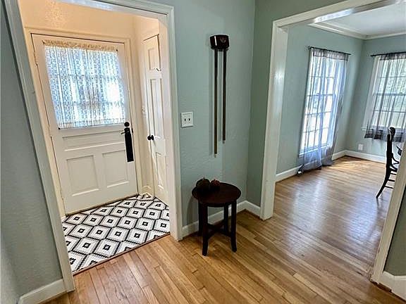 You don't want to miss this irresistibly charming 1.5 story home...3 BD, 1.5 BA..the living room features hardwood floors, crown molding, fireplace & a door leading to the screened in porch, the formal dining room features hardwood floors & crown molding. The master bedroom is on the main level & has built ins but is currently being used as a family room and an office. The 2 bedrooms upstairs feature hardwood floors & both have walk in closets. Unfinished full basement w/storm shelter. Large yard with a privacy fence. Detached garage. Close to the park. Back on the market no fault of seller.