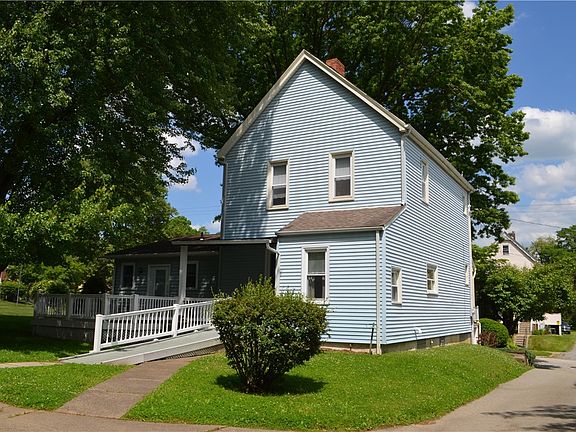 Spacious home on a quarter acre level lot features a 1st floor laundry room and wheelchair accessible master bedroom addition with its own full bath with a sky light, a roll in shower and its own private entrance leading out to a large deck and wheel chair ramp. This space could also be used as an additional family room or game room! The formal dining room and living room are open to each other with high ceilings and a built in china cupboard. Plenty of storage and work space in the kitchen including a nice pantry with roll out shelves. There is a small den/mudroom off of the kitchen leading in from the back entrance. Enjoy the beautiful tree lined street from the covered front porch or hide away on the large back deck overlooking a beautiful semi private yard! The oversized 2 car garage sits off the alley way with additional paved off street parking.